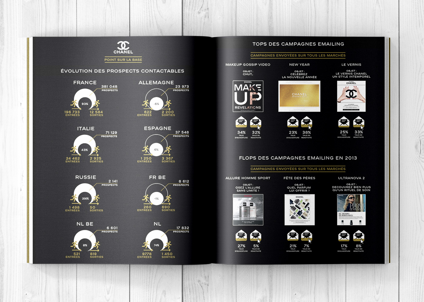 Présenter sous forme d'infographie des résultats de l'activité suites aux campagnes CRM et opérations de collecte organisés par l'agence 1000mercis pour la marque Chanel Europe