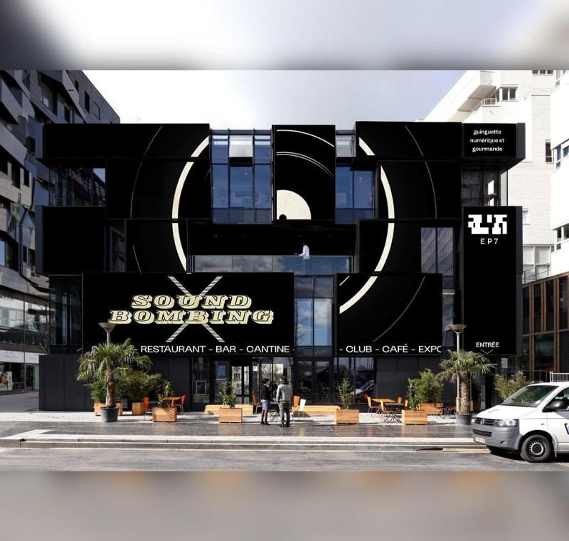 Animation pour la façade de l'EP7, la guinguette numérique gourmande.